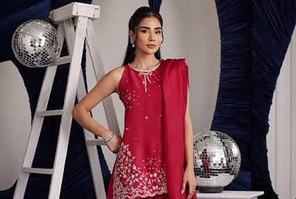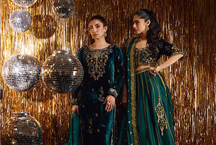 A curation of festive silhouettes, rich textures, and intricate handwork, crafted to add timeless elegance to your most cherished moments.