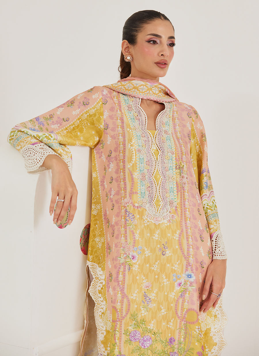 Bright, delicate, and full of charm — Briella captures the warmth of festive moments wrapped in soft elegance. Crafted in pure raw silk, the shirt blooms with a vibrant floral print, blending sunlit yellows with blush pinks and hints of pastel hues that feel fresh and uplifting.