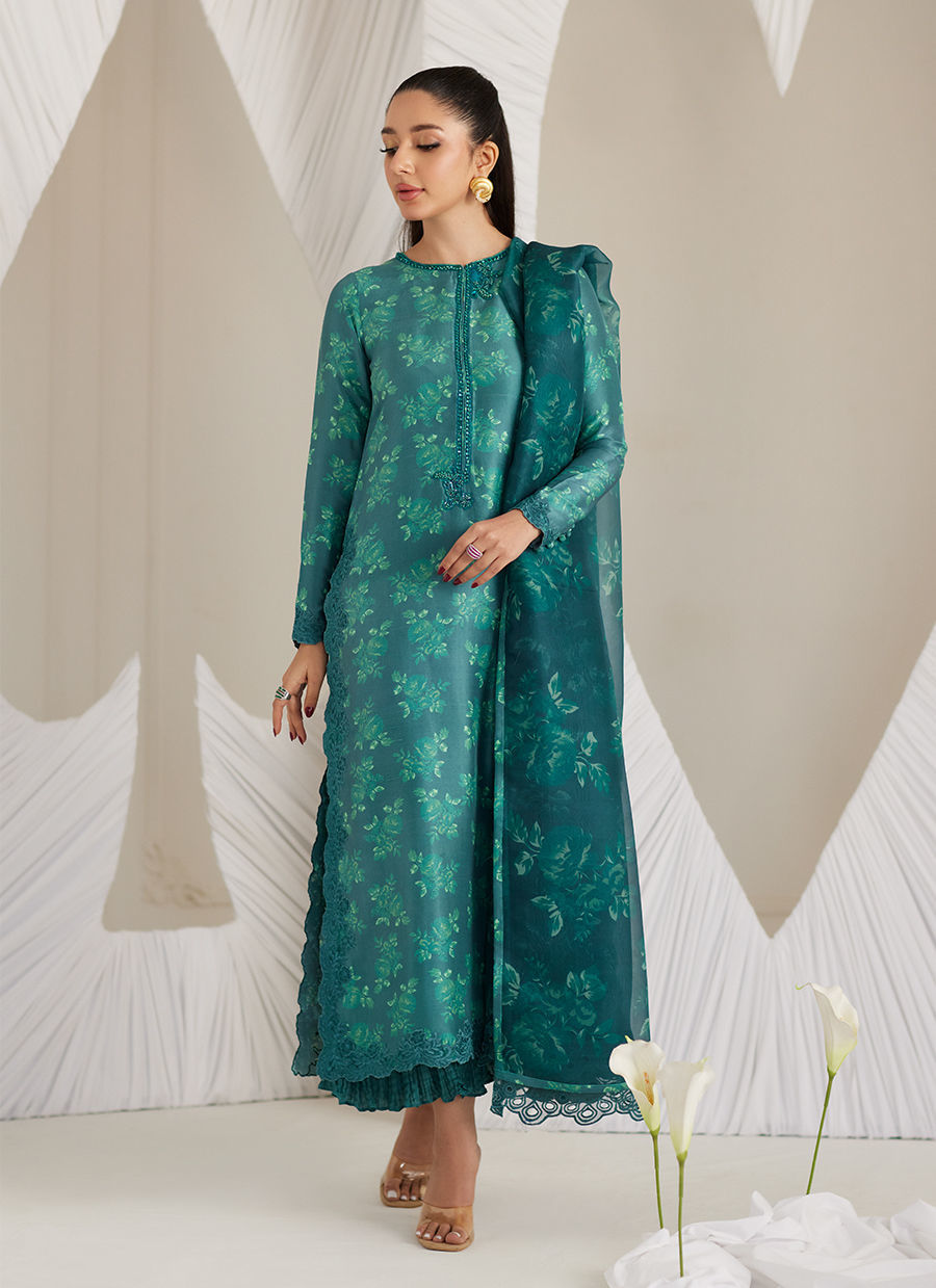 Discover elevated, refined prints created in-house with immaculate tailoring and steal the show this festive season! The Camilla shirt is cut from a canvas of rich emerald green and emblazoned with a tonal floral print. A sleek, flattering silhouette, decorated with delicate emerald embroidery, the Camilla is one of those outfits that carry you from day to night with effortless ease and elegance. A dreamy organza dupatta completes the ensemble with stunning flair. All RTS outfits come with complimentary sleeves
