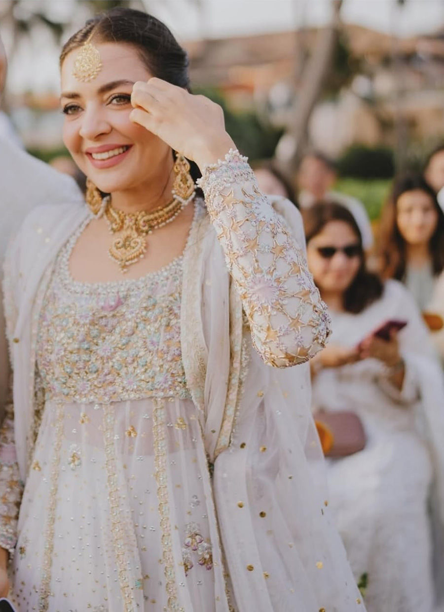 Farah Talib Aziz evokes feelings of romance, unabashed femininity and the grandeur of times past with majestic, flowing silhouettes and cascading dupattas.