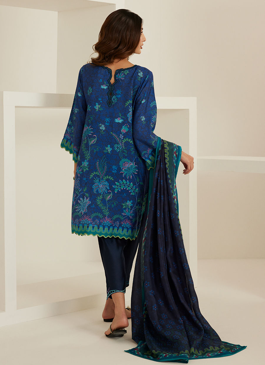 Deep, captivating, and effortlessly refined — Elfie shirt and dupatta is a celebration of bold elegance. Crafted in pure raw silk, the shirt is rendered in a rich midnight blue, adorned with intricate botanical prints in tones of teal and emerald that bring depth and quiet vibrance to the design.
