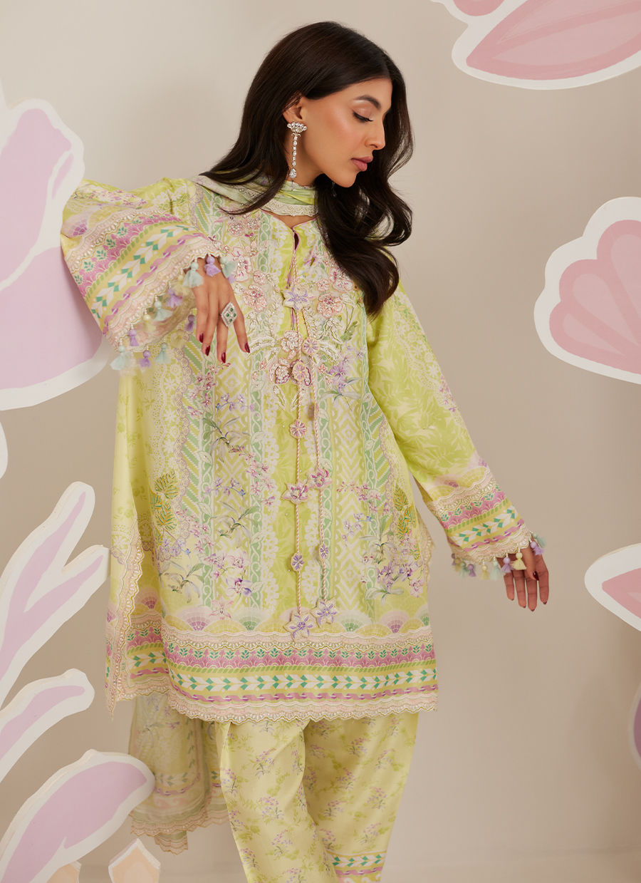 Paired with a printed raw silk khari shalwar for a statement finish and completed with a printed medium silk dupatta, this ensemble feels light, confident, and perfectly styled for elevated daytime wear. Designed for those who appreciate tradition with a modern twist, Riva is equal parts playful and refined.