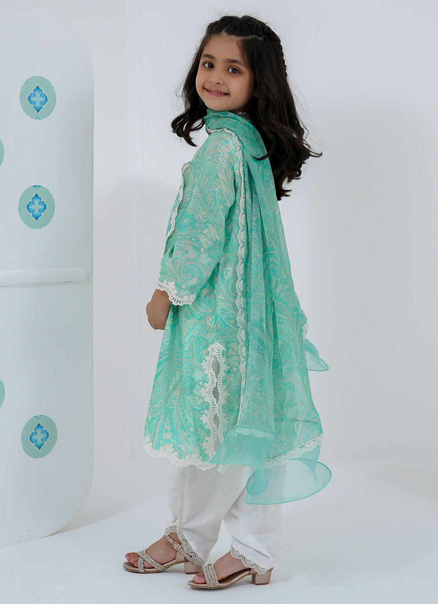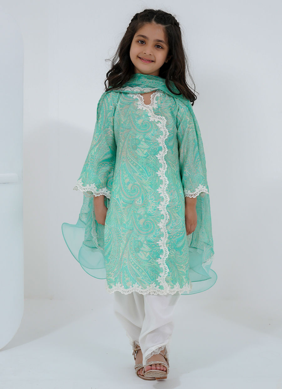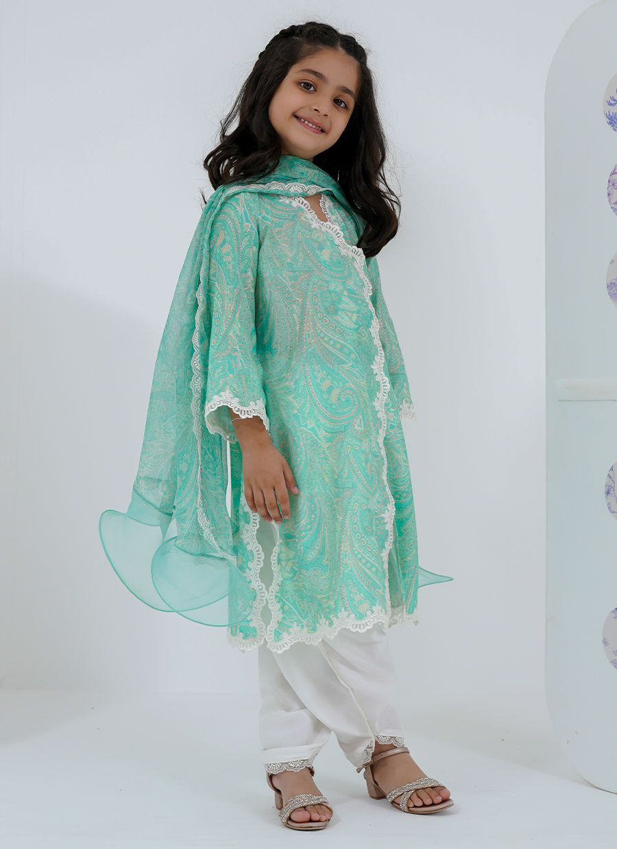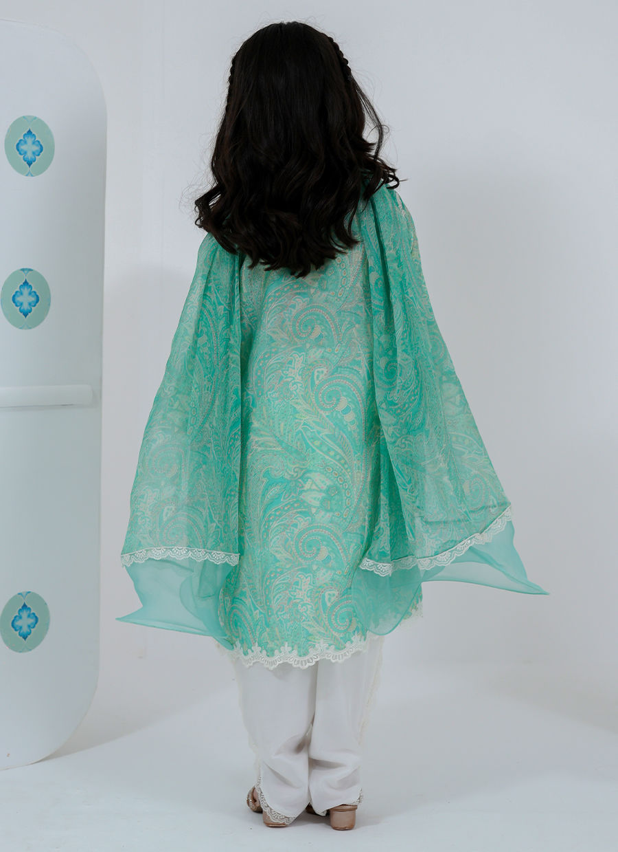 A graceful little rendition of our signature Sabrina, this mini version brings together delicate paisley-inspired prints and soft, flowing silhouettes. Designed in refreshing mint hues with lace detailing, it captures a timeless charm while keeping comfort at its core.